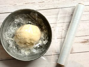 • Den Teig mit Frischhaltefolie abdecken und 30 Minuten ruhen lassen