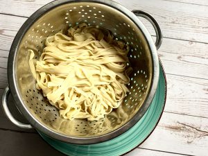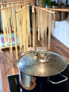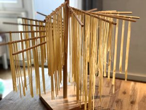 • Die Nudeln auf einen Nudeltrockner zum trocknen hängen (gute 30 Minuten)