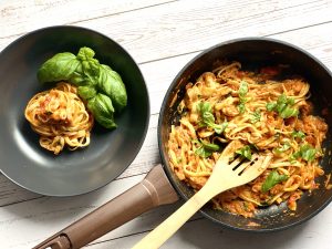 Nudeln selber machen ist überhaupt nicht schwer und gelingt auch den Anfängern! Frische Pasta und eine Soße euer Wahl dazu machen euer Gericht zu einem absoluten Kracher! Ihr werdet begeistert sein. Die Zubereitung ist simpel – hier gilt die Regel 1:1 das bedeutet auf 100 g kommt ein ganzes Ei. Das ist das Geheimnis 🙂 Nachdem ihr das erste Mal die Pasta selber ausprobiert habt – wollt ihr keine fertigen Nudeln mehr kaufen 🙂 Schaut euch gerne das Rezept an.