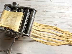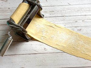 • Den Teig in der Nudelmaschine mehrmals durchrollen
