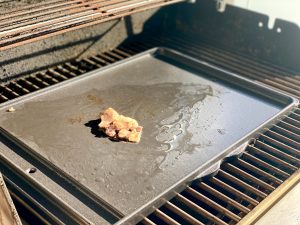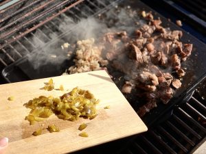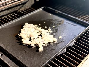 • Zwiebeln auf die Grillplatte geben und gut anbraten