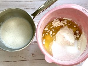 - Jetzt noch die Hefemilch hineingeben
