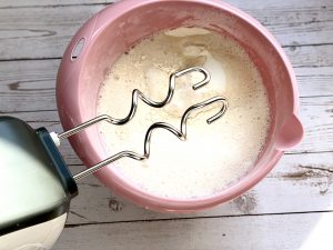 - Und zu einem Teig mit einem Handmixer verkneten