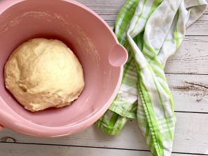 - Danach wieder in eine Schüssel geben, mit einem Tuch abdecken und 1 Stunde gehen lassen