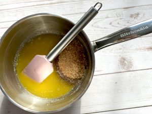 - Geschmolzene Butter mit Zimt und braunem Zucker verrühren