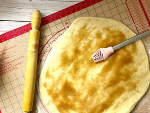 - Den Teig vorsichtig aufrollen