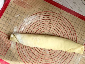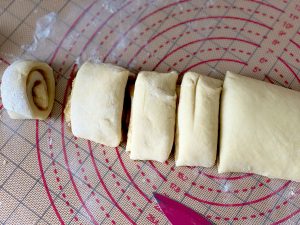 - Aus der Rolle ca. 4 cm dicke Röllchen schneiden