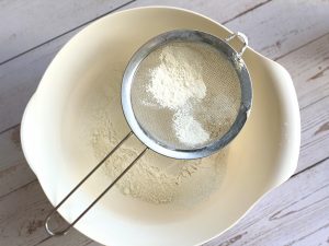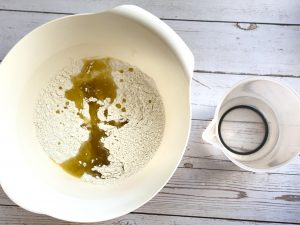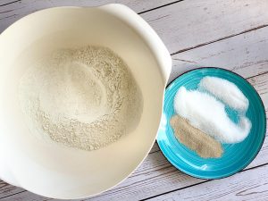 • Zucker, Hefe und Salz zu dem Mehl hinzufügen und vermischen