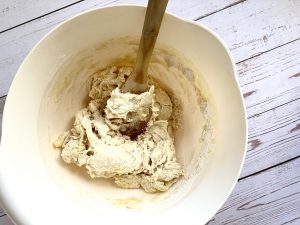 • Alles mit einem Holzlöffel vermengen, bis alle Zutaten verbunden sind