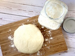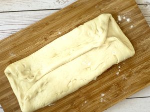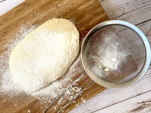 • Den Teig dann auf eine bemehle Arbeitsfläche geben