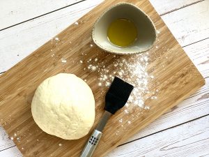 • Die Teigkugel mit Olivenöl komplett einpinseln