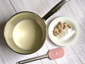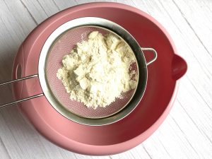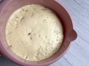 • Hefe und Zucker hinzufügen und gut vermengen. 15 Minuten bei Seite stellen