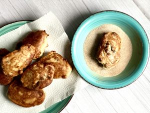 • Danach kurz auf Küchenpapier legen und im Zimtzucker wälzen