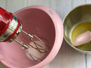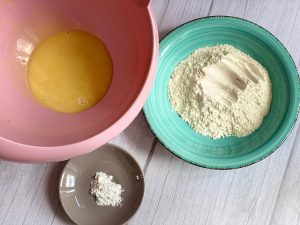 - Mehl und Backpulver zu der Eiermasse geben und gründlich verrühren