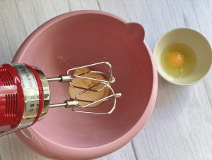 - Geschmolzene Butter mit Zucker 3 Minuten verquirlen