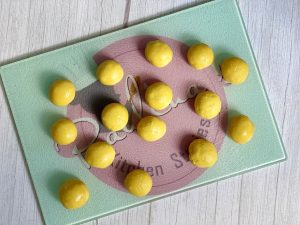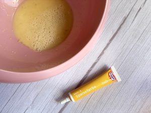 - Für eine wunderschöne Farbe noch ein paar Tropfen gelbe Lebensmittelfarbe geben und gut verrühren