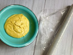- Den Teig mit Frischhaltefolie abdecken und für 2 Stunden in Kühlschrank legen