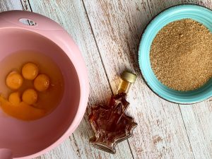 • Eier mit Zucker und Ahornsirup schaumig schlagen