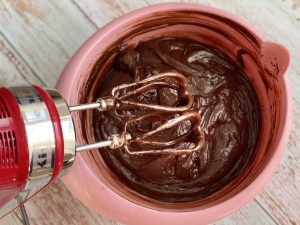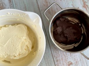 • Zu der Butter jetzt die Schokomasse geben und gut verquirlen