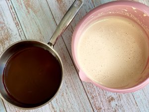 • Geschmolzene Schokolade mit der Eiermasse verquirlen