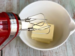 • Butter ca. 5 Minuten mit dem Handmixer verquirlen bis sie schön fluffig ist