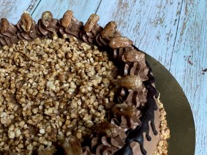 • Mittig auf die Torte oben – die restlichen karamellisierten Nüsse darauf verteilen