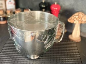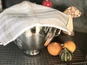 • Und damit wir nichts an Wärme verlieren.. noch ein Küchentuch drauf legen. Den Teig für 1 Stunde an einem warmen Ort stehen lassen