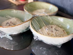 • Die Schalen decken wir mit Frischhaltefolie ab und lassen sie für 30 Minuten stehen.