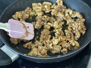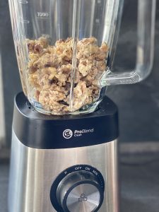 • Die ausgekühlten Walnüsse im Standmixer zermahlen, bis eine ölige Masse entsteht