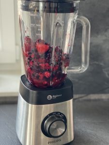 • Rote-Beeren-Mousse: die abgetauten roten Früchte kommen jetzt in den Standmixer
