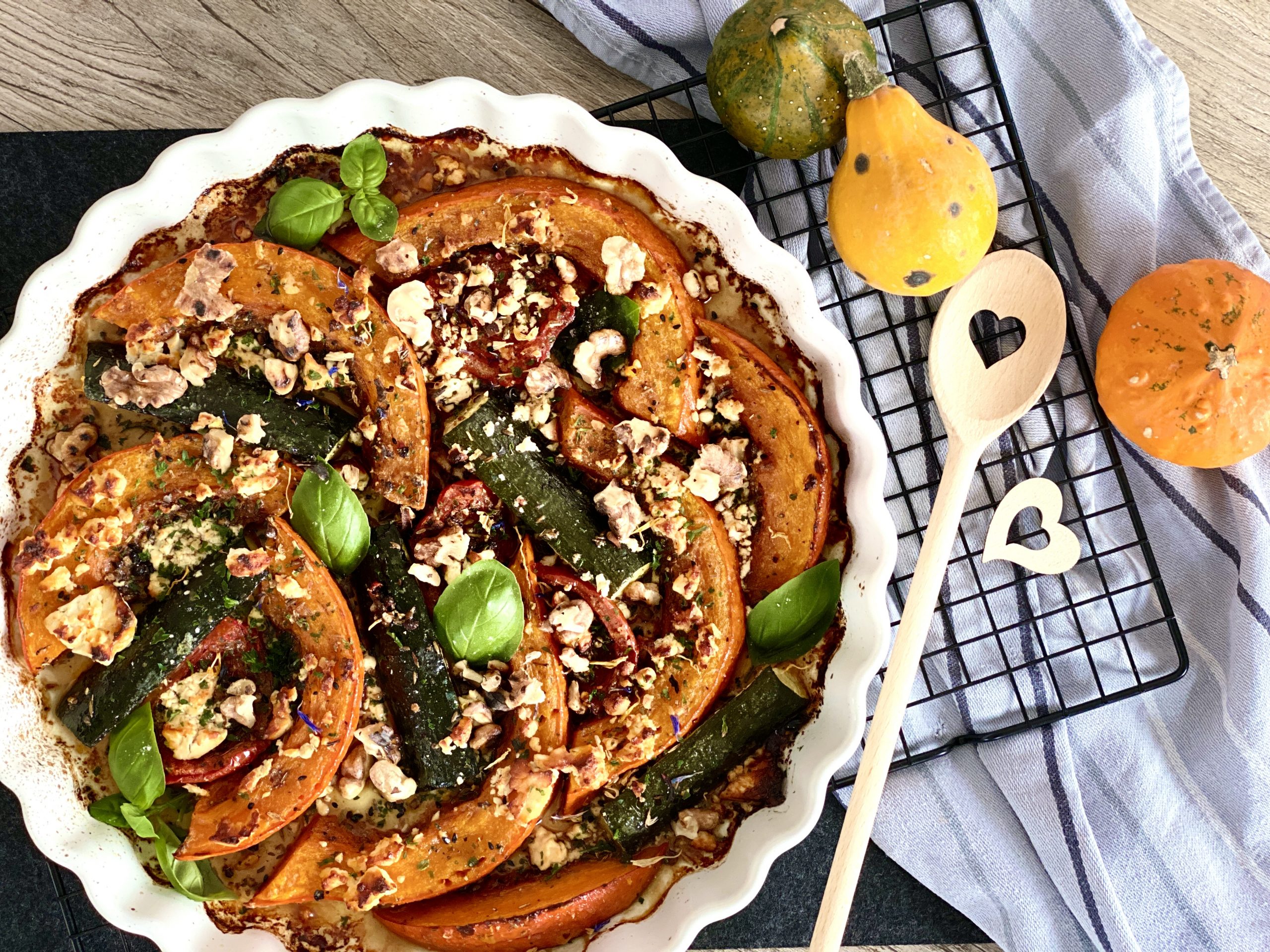Kürbis überbacken mit Feta und Nüssen