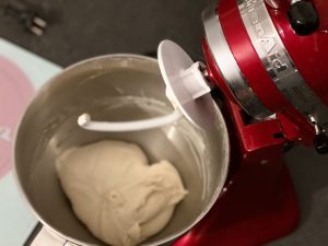 • Mehl, Zucker, Salz, Olivenöl und das kalte Wasser gut und lange miteinander verkneten (ca. 10-15 Minuten in der Küchenmaschine auf hoher Stufe)