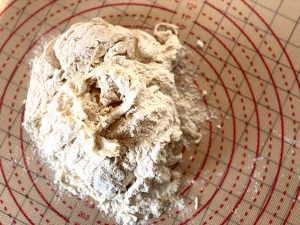 • Dann den Teig auf eine bemehlte Arbeitsfläche geben