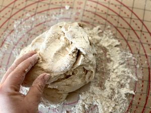 • Den Teig mindesten 10 Minuten mit den Händen kneten